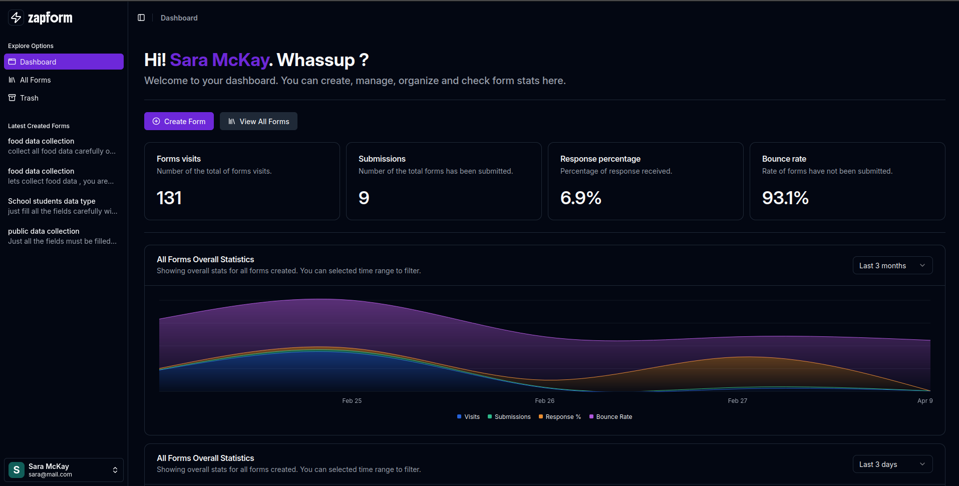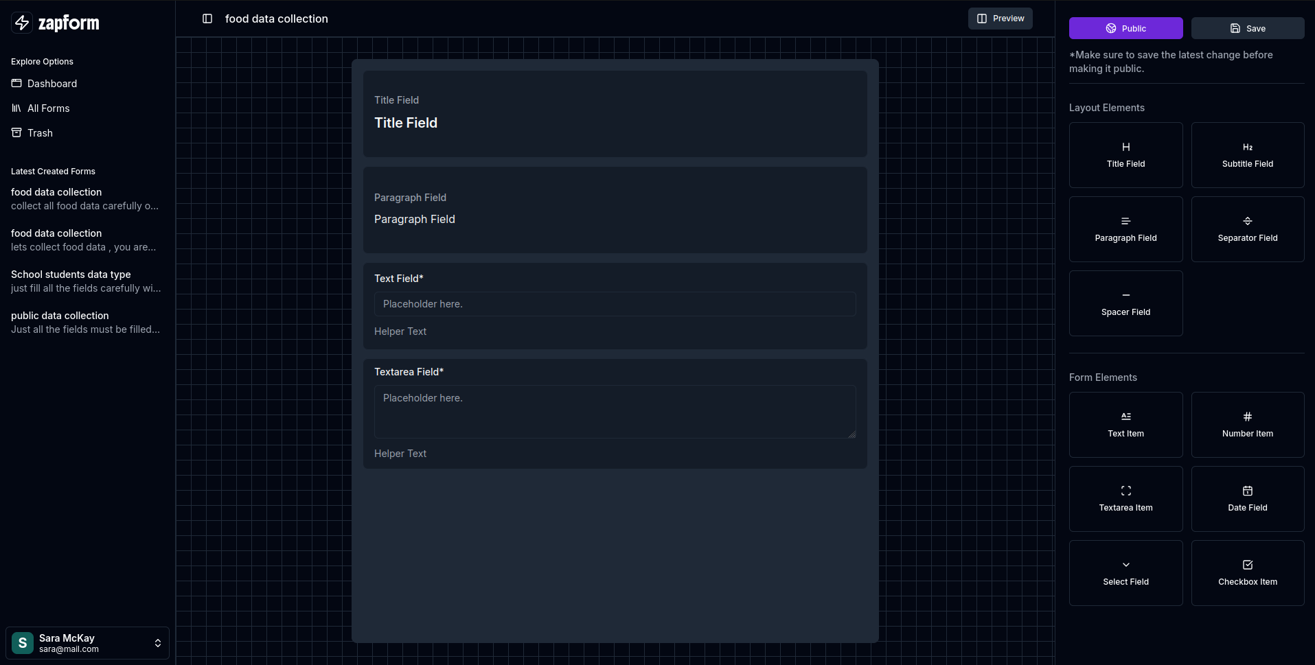 zapform lets you create fast, minimal forms by just dragging and dropping elements. Also you can share with anyone and track statistics.
